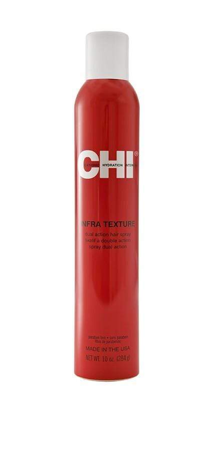 CHI Infra Texture Hairspray is an innovative hairstyling product that delivers exceptional hold and long-lasting style. This fast-drying hairspray creates texture and body, while providing superior shine and frizz control. It is specially formulated with silk and ceramic compounds to fortify and protect hair from heat styling and environmental stressors.