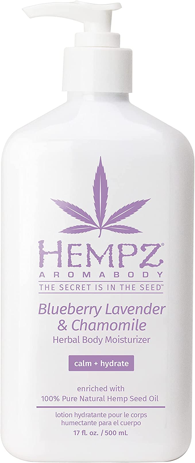 Indulge in the luxurious and soothing Blueberry Lavender & Chamomile Herbal Body Moisturizer from HEMPZ. Infused with 100% pure natural hemp seed oil, this light and daily moisturizer helps maintain your skin's hydration, leaving it soft, conditioned, and nourished.
