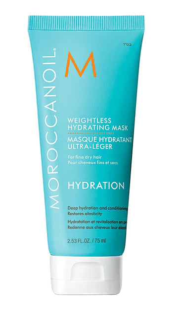 Revive lifeless, dry hair with this moisturizing, five-minute hair mask. Moroccanoil® Weightless Hydrating Mask is a rich and creamy, yet lightweight, deep-conditioning treatment that's rich in argan oil and nourishing ingredients. This high-performance formula hydrates and conditions fine hair while dramatically improving its texture, elasticity, shine and manageability.