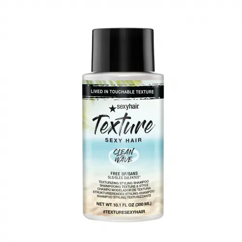 Texture Sexy Hair Clean Wave Texturizing Styling Shampoo provides added texture and even more texture without conditioner. Maintains hair's natural shine and provides up to 24 hours of humidity resistance. It can be used without conditioner for even more texture and helps maintains hair’s natural shine, with up to 24 hours of humidity resistance.