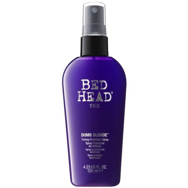 Bed Head Dumb Blonde Toning Protection Spray is a leave-in conditioner that helps protect blonde hair from damage while toning and brightening to enhance colour vibrancy. This spray contains a unique blend of conditioning agents that helps to detangle hair, smooth frizz and prevent split ends. It also contains violet toners to help neutralize brassy tones and maintain the cool tone of blonde hair.